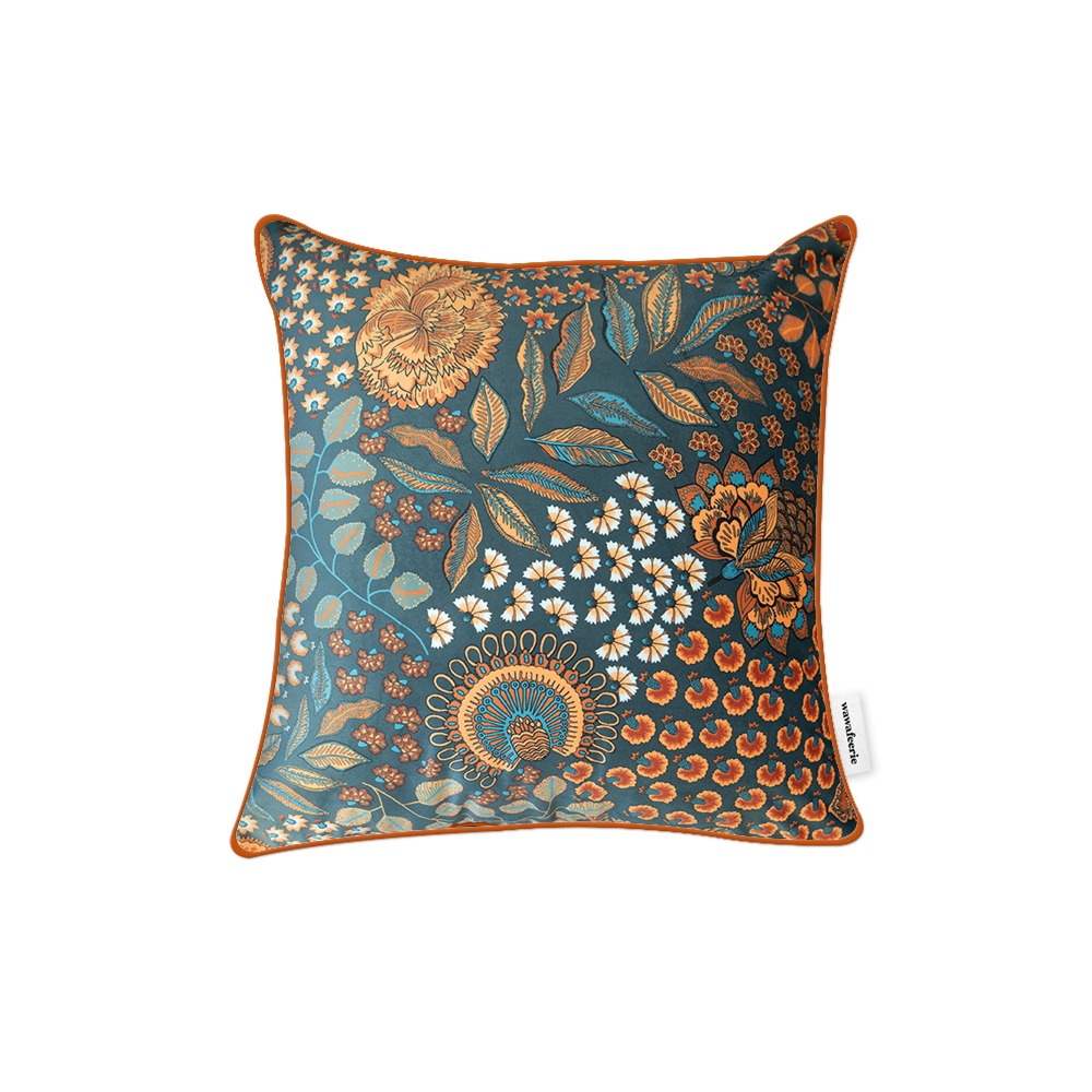 벨기에 브랜드 벨리세 수입 러그 시에나(좌)는 실내 공간의 사이즈와 구조에 맞춰 디자인 제작이 가능한 맞춤 러그입니다. 약 8mm 파일 두께와 330,000point/m²의 고밀도 구조로, 밟을 때마다 부드럽고 탄탄한 감촉을 전해줍니다. 실크처럼 섬세한 색감이 공간을 포근하게 감싸며 밀도 높은 표면으로 관리 또한 간편합니다. 프랑스 브랜드 린더 수입 패브릭 쿠션 펜자브(우)는 딥그린 바탕에 골드 플라워 패턴이 조화를 이루는 클래식한 쿠션입니다. 100% 폴리에스터 벨벳 소재로 내구성과 고급스러움을 모두 갖추어 공간에 품격 있는 포인트를 더해주는 프리미엄 데코 아이템입니다.